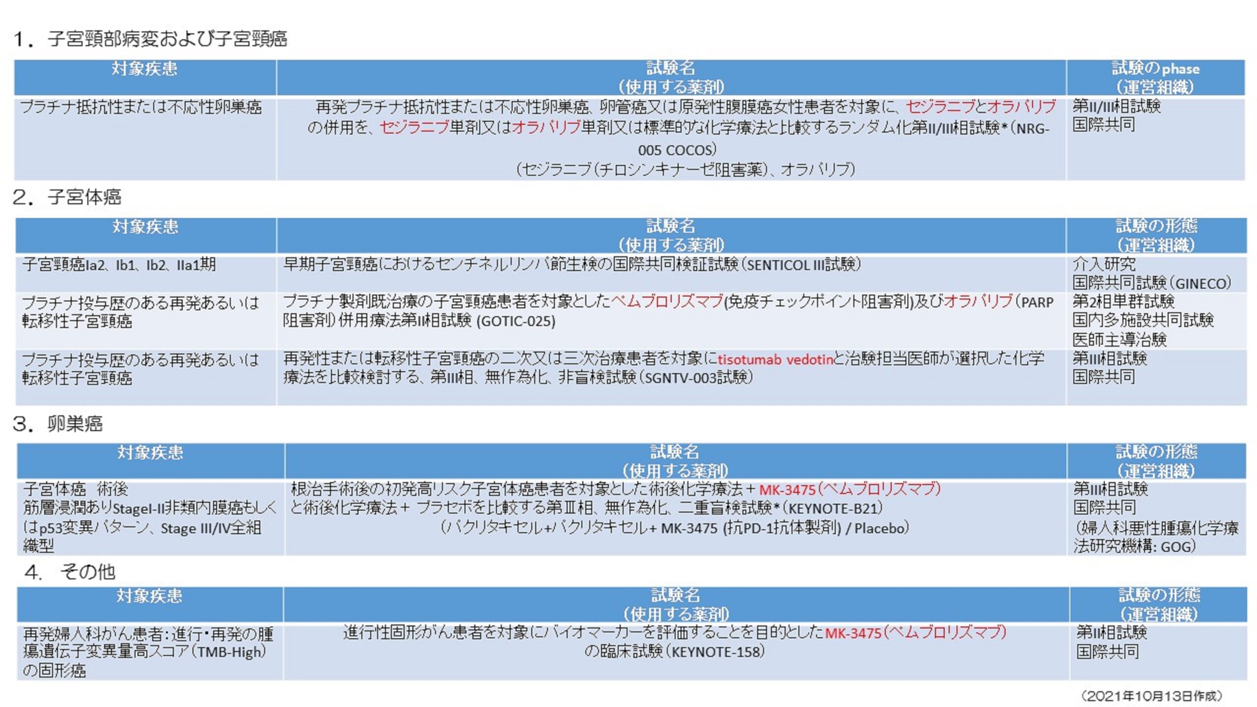 埼玉医科大学国際医療センター婦人科腫瘍科 > trials_13oct2021_ver2 交通アクセス 埼玉医科大学 国際医療センター 埼玉医科大学病院 ホームHome 診療部長からのご挨拶Our mission スタッフ紹介Faculty & Staff 診療内容Diseases & Treatments 施設紹介Facilities 臨床試験Clinical trials 研究Research 教育プログラムEducation & Training program 診療実績Clinical activity 業績Publications 業 績 Publications