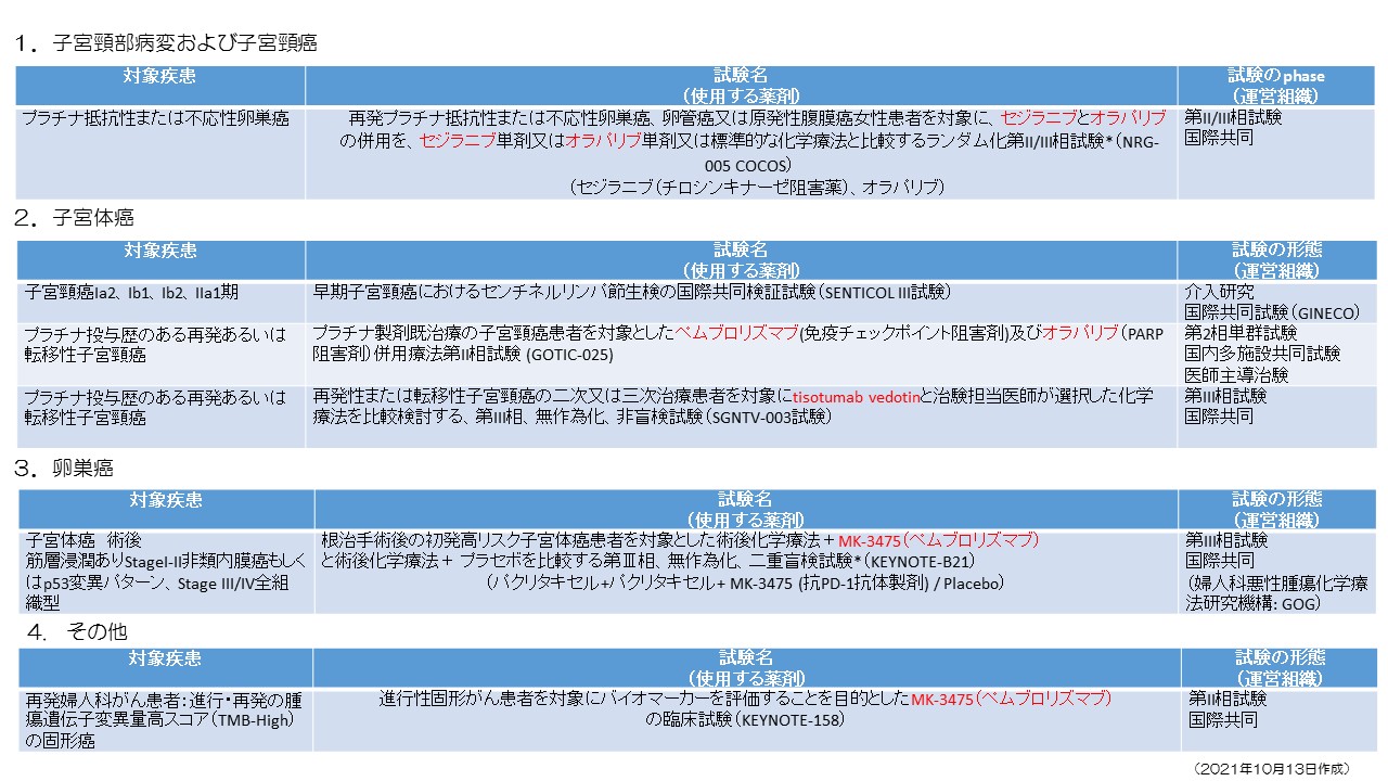 埼玉医科大学国際医療センター婦人科腫瘍科 > trials_13oct2021_ver2 交通アクセス 埼玉医科大学 国際医療センター 埼玉医科大学病院 ホームHome 診療部長からのご挨拶Our mission スタッフ紹介Faculty & Staff 診療内容Diseases & Treatments 施設紹介Facilities 臨床試験Clinical trials 研究Research 教育プログラムEducation & Training program 診療実績Clinical activity 業績Publications 業 績 Publications